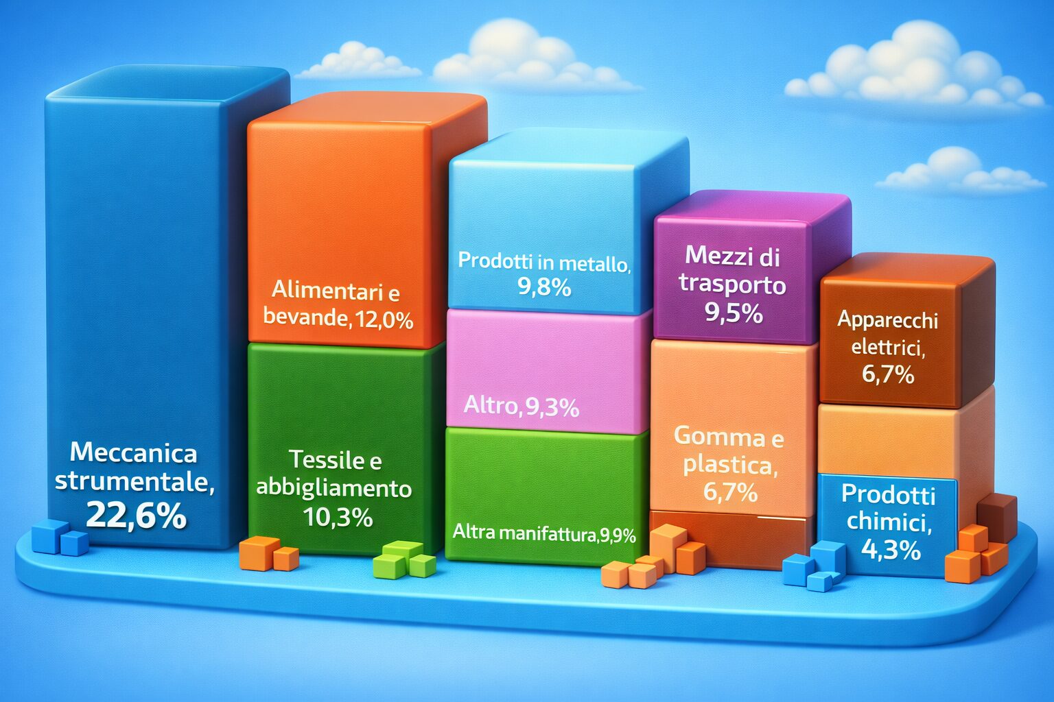 Tra i fattori positivi, la diversificazione geografica in corso riduce la dipendenza dai mercati tradizionali europei e aumenta la resilienza del sistema. La presenza consolidata nei settori a più alto valore aggiunto, come la meccanica strumentale e la cantieristica, garantisce margini più elevati e maggiore protezione dalla concorrenza di prezzo.